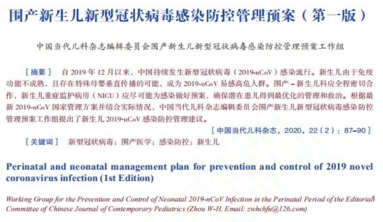關(guān)注!《圍產(chǎn)新生兒新型冠狀病毒感染防控管理預(yù)案(第一版)》發(fā)布